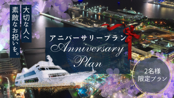 アニバーサリープランお祝いができるディナークルーズです選べるディナーコース + 3つのお祝いつきのアニバーサリプラン。